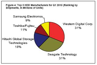 據iSuppli公司,西部數據在2010年第一季度硬盤出貨量最多,季度出貨量首次超過希捷,結束了長期屈居第二的局麵。