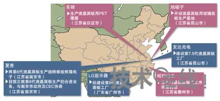液晶麵板廠商與相關部材廠商紛紛進軍中國