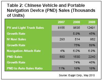 盡管2009年中國市場的乘用車(PV)和輕型卡車銷量接近1230萬輛,躍居全球最大的汽車市場,但包括OEM和售後in-dash在內的車載導航配售率隻有7%左右。