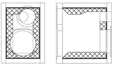 為了避免箱體共振,對兩側箱板和上、下麵板使用22mm厚的中密度纖維板(MDF),前麵板則使用30mm厚的MDF。6塊箱板的內表麵最好全部貼上4mm厚的鉛皮(但較貴),也可貼上相同厚度的瀝青油毛氈進行聲阻尼。在箱板開口處應仔細地將阻尼材料剪掉,以免妨礙驅動單元和出聲管的安裝。