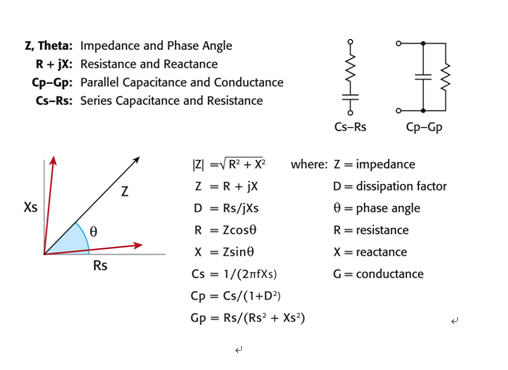 這些測量考慮了與電容相關的串聯與並聯電阻,以及耗散因子(漏流)。圖4給出了這類測量可以測出的主要電路變量。