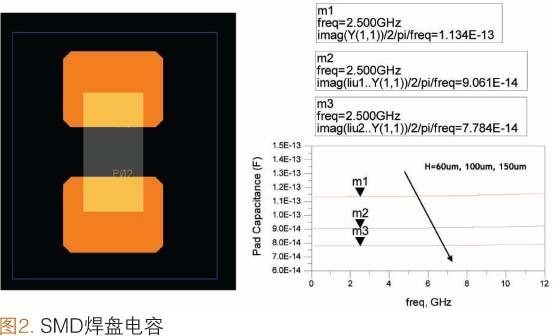 雖然01005SMD電容已麵市一段時間,但是因為元件價格和組裝成本較高,並沒有成為RFSiP的普遍選擇。我們對帶有焊盤分布和互連線的0201SMD電容進行了研究。