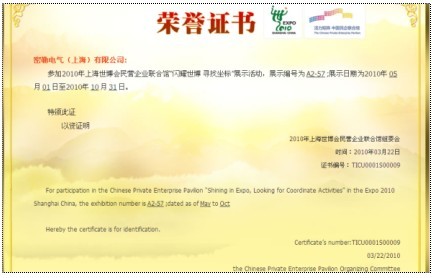 在2010世博會開幕之際,密勒電氣(上海)有限公司通過世博會企業聯合館“閃耀世博 尋找坐標”官方審核,名字被刻入館內水晶展示牆,充分體現了密勒的積累百年的實力和影響力。