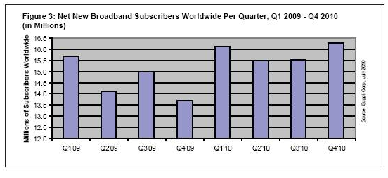 圖3所示為每季度新增寬帶用戶的預期數量,從2009年第一季度到2010年第四季度。