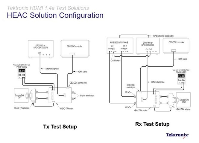 泰克的測試解決方案不僅Type D(移動HDMI)和Type E(車用HDMI)新興應用通吃之外(無需硬件仿真器,並且相關夾具產品都通過了CTS1.4的批準),而且還能實現驗證HDMI 以太網和音頻回傳通道(HEAC) 、3D HDMI強製格式、4K x 2K 和新的色彩空間格式。HEAC的物理層測試包括以太網發送、接收測試;音頻發送、接收測試;yijishebeizukangceshihexianlanceshi。tongyangshitongguoruanyingjianjiehejinxingmonidefangfashideyonghuwuxutouzigoumaigengduoceshiyi,zhiyaogoumaixiangyingjiaju,kezaiyuanyoushiboqi、信號發生器的基礎上進行配置,可產生真正的HEAC信號。