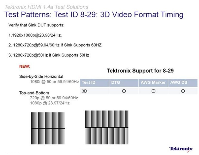圖5:泰克參與製定了HDMI1.4/1.4a關於強製3D視頻格式的一致性測試標準。