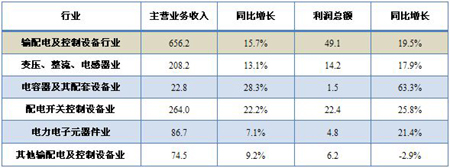 表:輸配電及控製設備行業及其子行業主營業務收入和利潤總額(單位:十億元)