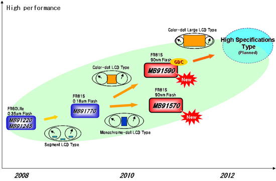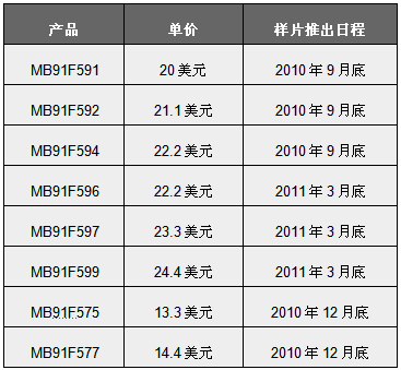 富士通半導體還同時宣布未來針對段顯示儀表板,即將推出2款MB91570係列的微控製器產品。該產品將於2010年12月底上市。