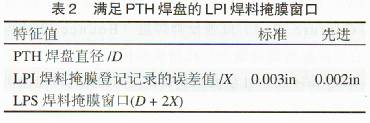LDI對焊料掩膜窗口的潛在影響在表2中所示。製造廠商所能實現的最小液體可成像(LiquidPhotoima8eable,簡稱LPI)焊料掩膜允許誤差(x)是因為多層層壓板的影響導致材料移動,由於鍍覆和烘幹的影響導致材料尺寸的變動以及由於環境的變化導致在成像l工藝過程中變化的共同作用而產生的。對於焊料掩膜成像的後期是綜合的,因為常規的焊料掩膜成像要花費較長的時間(20s~40s),
