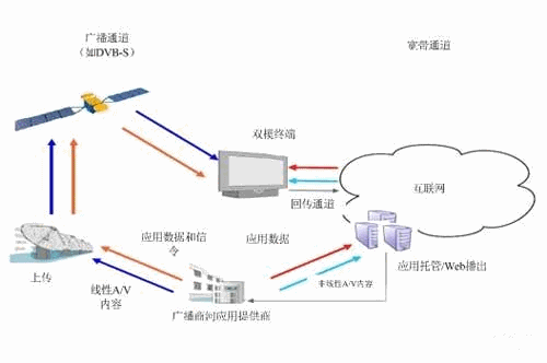 對運營商而言,數字電視數據業務可能來源於廣播信道(衛星、有線或無線等)和/或寬帶信道(互聯網、或其它的IP通道)dexinhao,yinshipinyushujukeyibujiaqufendiyouzhelianggetongdaofenbiejieru,zaidaikuanxianzhideqingkuangxia,guangbotongdaokeyiyonglaibosonggaoqingjiemu,erkuandaideshiyongxingshijiuhuiyouhenguang,rushipindianbo、時移、信息瀏覽、電子商務等。