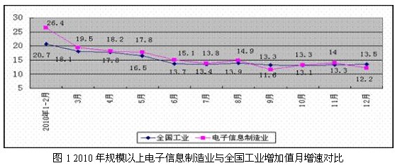 2010年是“十一五”規gui劃hua收shou官guan之zhi年nian,也ye是shi我wo國guo電dian子zi信xin息xi產chan業ye回hui升sheng調tiao整zheng的de重zhong要yao一yi年nian,受shou擴kuo內nei需xu政zheng策ce成cheng效xiao顯xian現xian和he外wai需xu市shi場chang逐zhu步bu回hui暖nuan的de共gong同tong作zuo用yong,行xing業ye出chu現xian恢hui複fu性xing增zeng長chang,總zong體ti呈cheng現xian前qian高gao後hou穩wen態tai勢shi。軟ruan件jian產chan業ye和he對dui外wai貿mao易yi出chu現xian新xin突tu破po,經jing濟ji效xiao益yi穩wen步bu提ti高gao,投tou資zi持chi續xu高gao位wei增zeng長chang,產chan品pin結jie構gou調tiao整zheng深shen入ru,產chan業ye鏈lian向xiang上shang延yan伸shen的de趨qu勢shi更geng加jia明ming 顯,企業、市(shi)場(chang)和(he)區(qu)位(wei)布(bu)局(ju)出(chu)現(xian)新(xin)趨(qu)向(xiang),行(xing)業(ye)為(wei)推(tui)動(dong)信(xin)息(xi)化(hua)發(fa)展(zhan)和(he)促(cu)進(jin)兩(liang)化(hua)融(rong)合(he)發(fa)揮(hui)積(ji)極(ji)作(zuo)用(yong),在(zai)國(guo)民(min)經(jing)濟(ji)發(fa)展(zhan)和(he)全(quan)球(qiu)產(chan)業(ye)布(bu)局(ju)中(zhong)日(ri)益(yi)占(zhan)據(ju)重(zhong)要(yao)地(di)位(wei)。