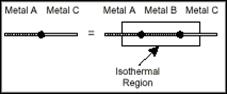 考慮圖3中電路。該電路同前文圖1中所描述的電路相似,但是在J3接點前插入了一小段銅鎳合金導線。所有接點處於同樣的溫度條件下。假定J3和J4接點溫度相同,金屬過渡層熱電偶定律說明圖3中的電路同圖1中的電路在電氣理論上是相同的。所以,圖3電路所測得的任何結果都適用於圖1所示電路。