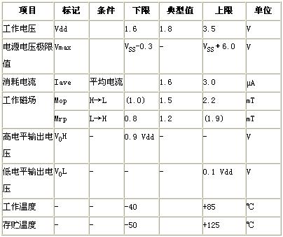 圖2為AS係列的外觀形狀。除了業界標準的SOT23(2.9×2.8×1.2mm),SON4(2.0×2.1×0.6mm)之外,加上超小型的XSON(1.2×1.2×0.4mm),共3種規格,可根據實際空間組合選擇。表1是AS係列的代表產品AS-M15TA-R的規格一覽表,其中最重要的是工作磁場。工作磁場是指輸出信號改變的磁場,為了防止跳躍現象(“高”和“低”在閾值附近反複出現的現象),具有磁滯區間,如圖3所示。除了標準特性外,還具有靈敏度可變,工作電壓的擴大可變等特性。詳細的規格標準就不在此詳述。圖4是為了減少消耗電流進行的抽樣測定的說明簡圖。