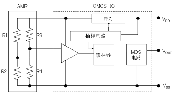 (*1)AMR(Anisotropic-Magneto-Resistance)各向異性磁阻效應。各向異性是指具有方向性,在這裏是指可以檢測出任意方向的磁力。
