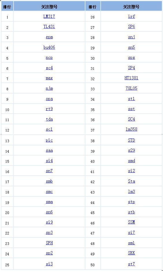 電子元器件周熱門搜索排行榜top50(5月23日-5月29日)