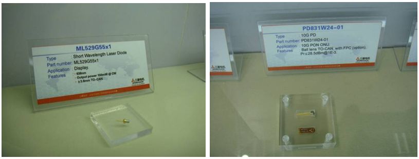 同期,三菱電機還展示了新推出的應用於G-PON ONU的 DFB-LD, 該款DFB-LD 有著寬tolerance curve 和較小的 beam angle和較小的tracking error等優點。在10G xG-PON 方麵,公司也新推出了應用於ONU的1.27μm DFB-LD。為無源光網絡的發展提供了必要的支持。[page]
