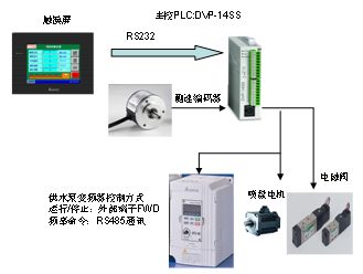cishebeizhuyaoyonglaigeiyizhihaodebujiashi,shuruxinhaoyouliangge,yigeshizhujiqidongxinhao,lingyigeshizhujicesulunmaichongxinhao。dangzhujiqidonghou,penpandianjiyunxing,famendakai,gongyebengxiananshedingdezuidipinlvyunxing,dangzhujishengsuhou,PLC根gen據ju測ce速su輪lun過guo來lai的de脈mai衝chong信xin號hao實shi時shi計ji算suan當dang前qian布bu料liao的de實shi際ji線xian速su度du,根gen據ju實shi際ji線xian速su度du及ji濕shi度du設she定ding值zhi控kong製zhi供gong水shui泵beng的de運yun行xing頻pin率lv,從cong而er控kong製zhi布bu麵mian的de濕shi度du。見jian圖tu5。