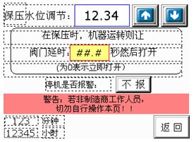 參數設定:濕度設定用來設定供水量的大小,另外係統參數畫麵還設定供水最小頻率及其它輔助動作。見圖6。