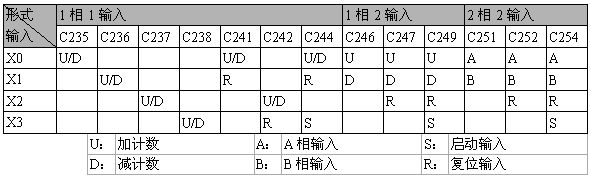 其中輸入點為X0、X1可規劃成更高速的計數器,1相輸入可達20kHz,但這兩個輸入點的計數頻率相加仍必須小於或等於頻寬20kHz的限製。若計數輸入為2相輸入信號,則計數頻率約為4kHz。輸入點X2、X3高速計數器1相輸入可達10kHz。