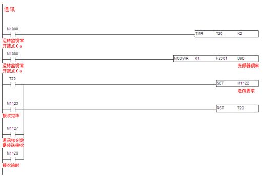3.2.3通訊程序:台達SS PLC提供兩個通訊口。本文中,SS PLC的COM1口已與觸摸屏通訊,所以利用SS PLC的COM2 通訊口(此通訊口接口是RS485),支持MODBUS通訊便利指令,編通訊程序像編順序邏輯程序一樣簡單,讓對通訊底層不是很了解的人也能快速上手。快速編寫MODBUS通訊程序,控製如台達全係列產品,如變頻器、溫控器、伺服等產品。見圖10。