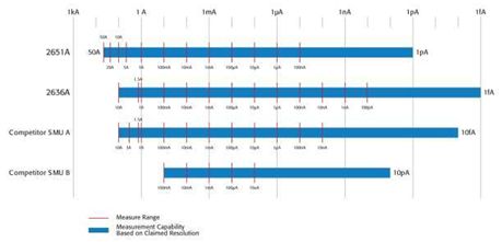 圖1 與競爭對手相比,吉時利SMU有更寬的動態範圍