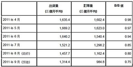 根據國際半導體設備材料產業協會(SEMI)最新公布的Book-to-Bill訂單出貨報告,2011年9月份北美半導體設備製造商平均訂單金額為9.848億美元,B/B值(Book-to-Bill Ratio,訂單出貨比)為0.75;代表半導體設備業者當月份出貨100美元,接獲75美元的訂單。