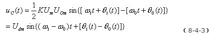 用低通濾波器LF將上式中的和頻分量濾掉,剩下的差頻分量作為壓控振蕩器的輸入控製電壓uC(t)。即uC(t)為:
