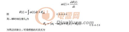 式中的ωi為輸入信號的瞬時振蕩角頻率,θi(t)和θO(t)分別為輸入信號和輸出信號的瞬時位相,根據相量的關係可得瞬時頻率和瞬時位相的關係為: