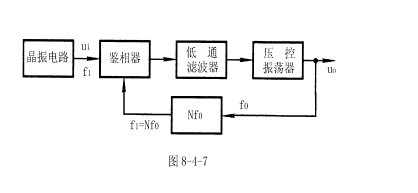 根據鎖相環的工作原理和調頻波的特點可得解調電路組成框圖如圖8-4-6所示。3.鎖相環在頻率合成電路中的應用