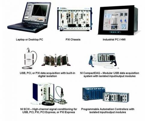 對於采用通用數據采集設備和外部信號調理硬件的測量產品,市場上有數種配置可供選擇。例如,NI M係列包含多款提供高性能模擬I/O和數字I/O的非隔離式通用多功能數據采集設備。對於需要隔離功能的應用,您可以使用M係列設備及配套的外部信號調理電路,如NI公司的SCXI模塊或SCC模塊。這些信號調理平台提供了您為了實現與載荷測量計、應變計以及pH傳感器等工業傳感器直接連接所需的隔離功能和專用信號調理功能。