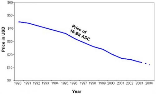 圖9 16-位模數轉換器的價格下降曲線