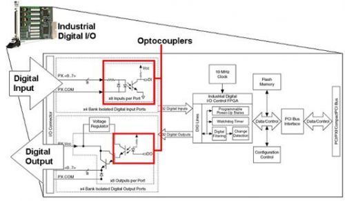 guangouheqi,jijiyuguangouheyuanlideshuzigelizhuangzhi,shizuigulaoyeshizuichangyongdeshuzigelifangfazhiyi。tamenkenaigaoyabingtigongduidianqizaoshenghecizaoshengdegaokangganraonengli。guangouheqichangyongyugongyeshuziI/O產品中,如NI PXI-6514隔離式數字I/O模塊(如圖10所示)和NI PCI-7390工業運動控製器。