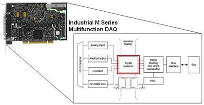 圖12 工業NI M係列多功能DAQ采用數字隔離裝置