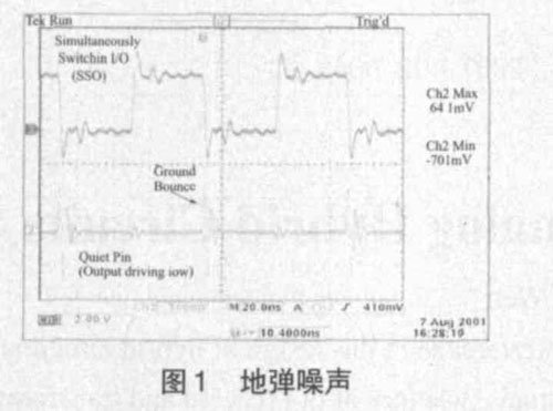 模(mo)擬(ni)信(xin)號(hao)與(yu)數(shu)字(zi)信(xin)號(hao)相(xiang)比(bi),對(dui)噪(zao)聲(sheng)的(de)敏(min)感(gan)程(cheng)度(du)要(yao)大(da)得(de)多(duo),因(yin)為(wei)模(mo)擬(ni)電(dian)路(lu)的(de)工(gong)作(zuo)依(yi)賴(lai)連(lian)續(xu)變(bian)化(hua)的(de)電(dian)流(liu)和(he)電(dian)壓(ya),任(ren)何(he)微(wei)小(xiao)的(de)幹(gan)擾(rao)都(dou)能(neng)影(ying)響(xiang)它(ta)的(de)正(zheng)常(chang)工(gong)作(zuo),而(er)數(shu)字(zi)電(dian)路(lu)的(de)工(gong)作(zuo)依(yi)賴(lai)在(zai)接(jie)收(shou)端(duan)根(gen)據(ju)預(yu)先(xian)定(ding)義(yi)的(de)電(dian)壓(ya)電(dian)平(ping)或(huo)門(men)限(xian)對(dui)高(gao)電(dian)平(ping)或(huo)低(di)電(dian)平(ping)的(de)檢(jian)測(ce),具(ju)有(you)一(yi)定(ding)的(de)抗(kang)幹(gan)擾(rao)能(neng)力(li)。但(dan)在(zai)混(hun)合(he)信(xin)號(hao)環(huan)境(jing)中(zhong),數(shu)字(zi)信(xin)號(hao)相(xiang)對(dui)模(mo)擬(ni)信(xin)號(hao)而(er)言(yan)是(shi)一(yi)種(zhong)噪(zao)聲(sheng)源(yuan)。數(shu)字(zi)電(dian)路(lu)工(gong)作(zuo)時(shi),穩(wen)定(ding)的(de)有(you)效(xiao)電(dian)壓(ya)隻(zhi)有(you)高(gao)低(di)電(dian)平(ping)兩(liang)種(zhong)電(dian)壓(ya)。當(dang)數(shu)字(zi)邏(luo)輯(ji)輸(shu)出(chu)由(you)高(gao)電(dian)壓(ya)變(bian)為(wei)低(di)電(dian)壓(ya),該(gai)器(qi)件(jian)的(de)接(jie)地(di)管(guan)腳(jiao)就(jiu)會(hui)放(fang)電(dian),產(chan)生(sheng)開關電(dian)流(liu),這(zhe)就(jiu)是(shi)電(dian)路(lu)的(de)開(kai)關(guan)動(dong)作(zuo)。數(shu)字(zi)電(dian)路(lu)的(de)速(su)度(du)越(yue)快(kuai),其(qi)開(kai)關(guan)時(shi)間(jian)一(yi)般(ban)也(ye)要(yao)求(qiu)越(yue)短(duan),當(dang)大(da)量(liang)的(de)開(kai)關(guan)電(dian)路(lu)同(tong)時(shi)由(you)邏(luo)輯(ji)高(gao)電(dian)平(ping)變(bian)為(wei)邏(luo)輯(ji)低(di)電(dian)平(ping)時(shi),由(you)於(yu)地(di)線(xian)通(tong)過(guo)電(dian)流(liu)的(de)能(neng)力(li)不(bu)夠(gou),大(da)量(liang)的(de)開(kai)關(guan)電(dian)流(liu)就(jiu)會(hui)引(yin)起(qi)邏(luo)輯(ji)地(di)電(dian)壓(ya)發(fa)生(sheng)波(bo)動(dong),我(wo)們(men)稱(cheng)為(wei)地(di)彈(dan)。如(ru)圖(tu)1 suoshi。shuzidianluzaochengdedidanzaoshenghedianyuanraodong,ruguoouhedaomonidianluzhong,jiuhuiyingxiangmonidianludegongzuoxingneng。youyuxiangdangduodeganraoyuanshitongguodianyuanhedizongxianchanshengde,qizhongdixianyinqidezaoshengganraozuida,suoyizaiPCB 設計時對地和電源的設計就顯得尤為重要。