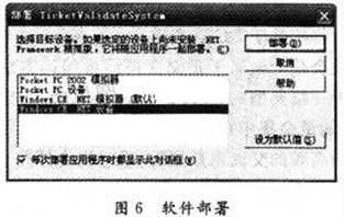 在Visual Studio 2003中進行軟件設計,並在模擬器中調試成功之後,就可以將軟件下載到實驗平台中運行,在軟件進行部署前安裝ActiveSync 4.1,並在軟件進行部署時選中“Windows CE.NET、設備”見圖6。