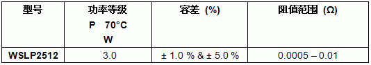 新款WSLP2512 Power Metal Strip電阻:規格彙總表