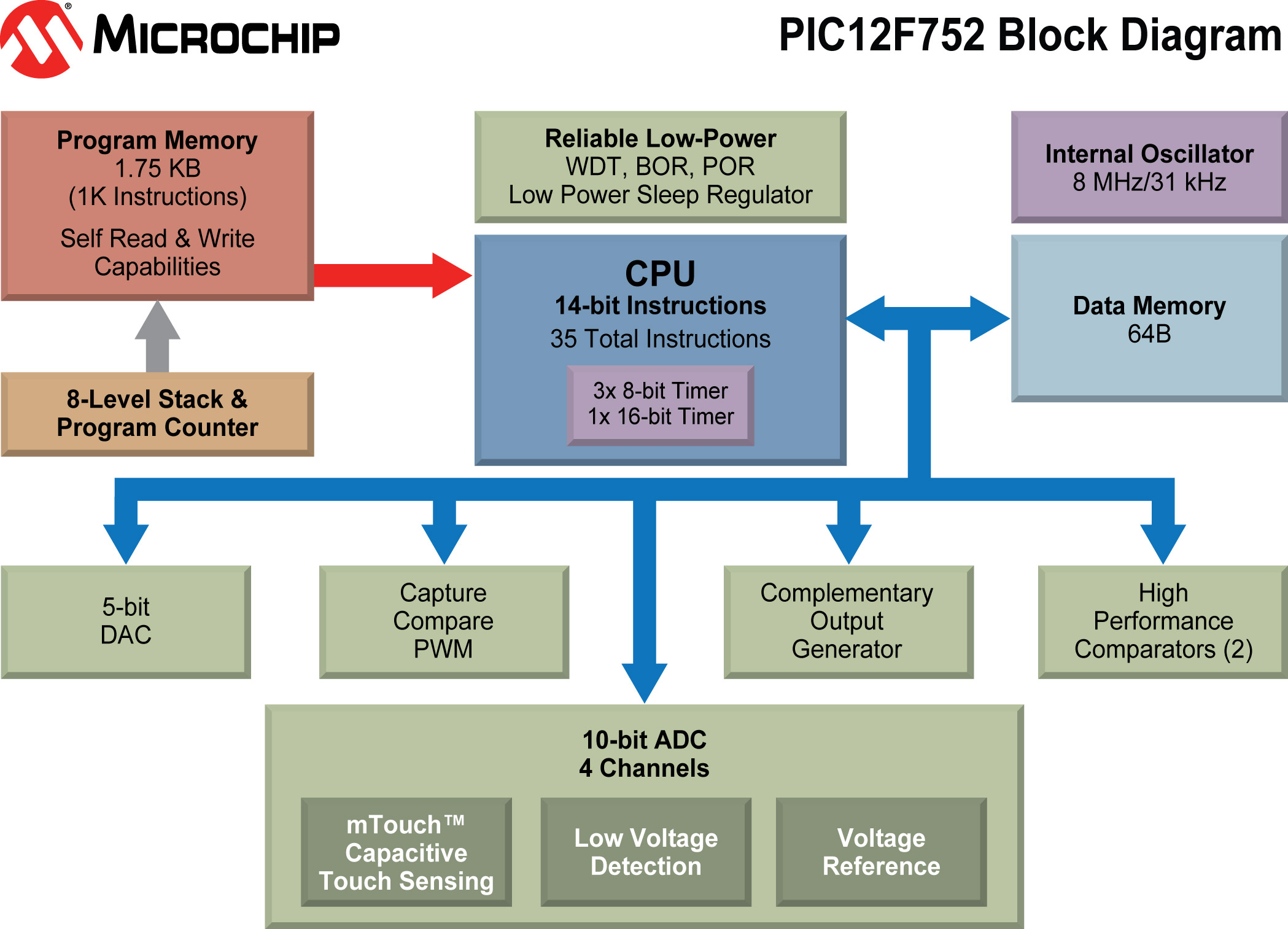 PIC12F(HV)752 MCU:Microchip推出通用8位PIC®單片機