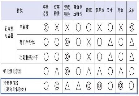 這裏通過表1列出了片狀獨石陶瓷電容器、鋁電解電容、鉭電解電容器的相互比較結果。片狀獨石陶瓷電容器的優點有兩個。
