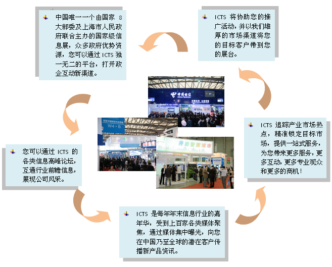 ICTS作為中國最具影響力的國際工業品牌展“中國國際工業博覽會”下(xia)最(zui)重(zhong)要(yao)的(de)專(zhuan)業(ye)展(zhan)之(zhi)一(yi),多(duo)年(nian)來(lai)依(yi)托(tuo)中(zhong)國(guo)戰(zhan)略(lve)性(xing)新(xin)興(xing)產(chan)業(ye)的(de)政(zheng)策(ce)導(dao)向(xiang),立(li)足(zu)市(shi)場(chang)需(xu)求(qiu),站(zhan)在(zai)行(xing)業(ye)的(de)前(qian)沿(yan),聚(ju)焦(jiao)業(ye)內(nei)熱(re)點(dian),為(wei)信(xin)息(xi)企(qi)業(ye)提(ti)供(gong)集(ji)產(chan)品(pin)展(zhan)示(shi)、信息交流、供需交易於一體的高端營銷平台,同時,也是中國每年年底前的信息業內人士聚會的嘉年華。