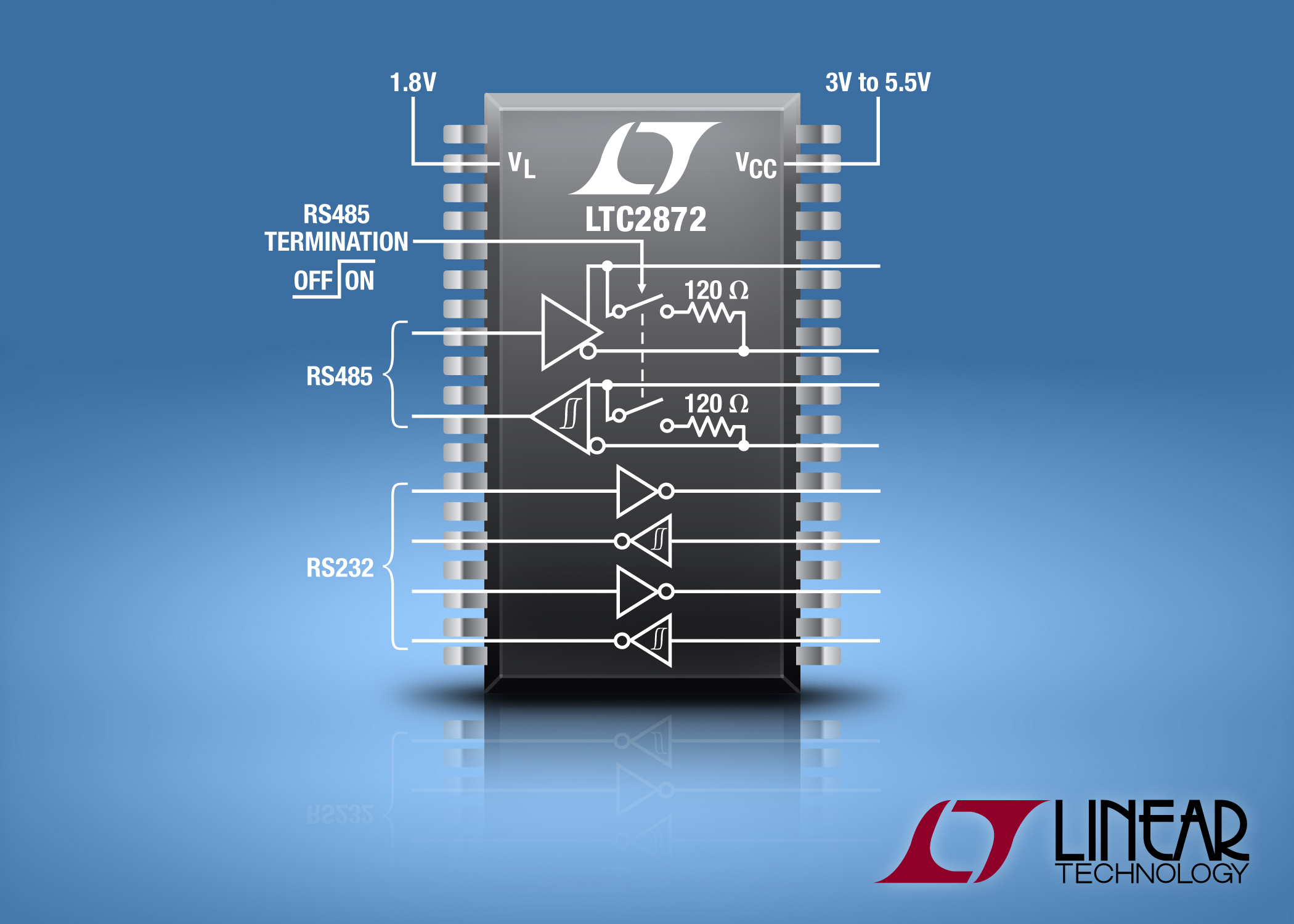 LTC2872:堅固型雙通道多協議收發器可提供集成可通斷終端