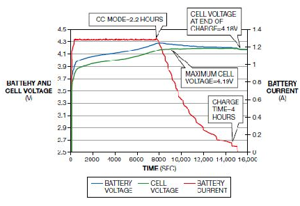 使用標準的CC/CV算法就可以對一個鋰化學電池的充電時間做出近似的估計,方法是用電池容量(安培小時)除以恒流模式下的充電電流(安培),得到的值再乘以充電時間1.3小時。通過正確的設計和對CC/CV模式算法的智能調整,可以得到更接近的計算值,但前者是一個良好的開始。另外,如果因為不良設計或不精確的電池電壓測量,使CC到CV模式的轉換開始太早,那情況就會糟得多。