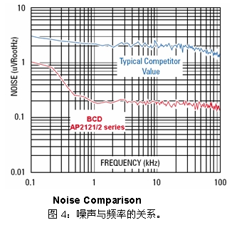 當然也有例外,個別歐美的大廠商采用先進的工藝設計生產的的CMOS LDO把本該外麵加的Bypass電容做到了芯片裏麵,這樣的LDO產品的噪聲約為100 uVrms的水平。