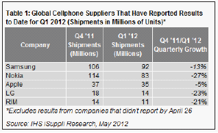 據IHS iSuppli公司的DRAM市場簡報,爾必達第一季度營業收入比2011年第四季度增長1%,占據大約12.6%的市場份額,排名升至第三。雖然其增長幅度可能顯得很小,但爾必達的表現優於整體DRAM市場。第一季度整體DRAM市場的營業收入為62億美元,比2011年第四季度的65億美元下降4%,如表1所示。爾必達的表現也優於緊隨其後的美光。美光的第一季度營業收入環比下降3%,排名下降一位至第四。