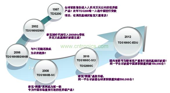繼全球突破50萬台之後,近日泰克公司又宣布,其全球最流行的基礎示波器TDS1000/2000係列(包含TDS200係列數字存儲示波器)在中國的累計出貨量刷新15萬台記錄,成為保有量最高的示波器產品係列,也標誌著數字示波器在中國得到全麵普及!