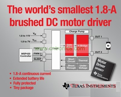 TI最小型1.8A有刷DC電機驅動器有效延長電池壽命
