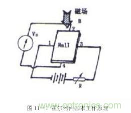 霍爾元件是根據霍爾效應進行磁電轉換的磁敏元件,其典型的工作原理圖如圖所示。霍爾元件是一個N型半導體薄片,若在其相對兩側通以控製電流I,而在薄片垂直方向加以磁場氏 則在半導體另外兩側便會產生一個大小與電流,和磁場B的乘積成工比的電壓。這個現象就是霍爾效應,所產生的電壓叫霍爾電壓UR.