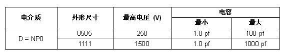 QUAD HIFREQ係列的工作電壓為200V~1500V,容量範圍1.0pF~1000pF。器件具有±0.1pF的嚴格公差,每十年的老化率為0%,工作溫度為-55℃~+125℃。