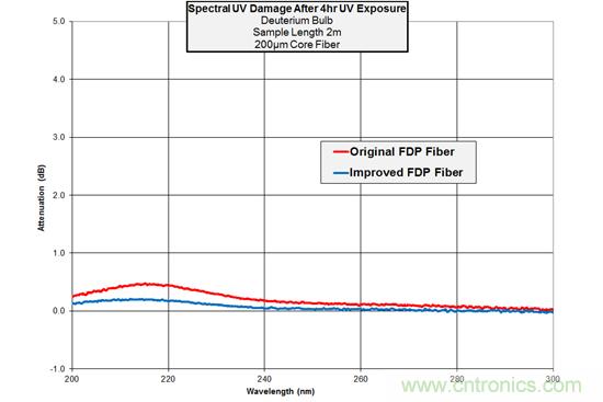 對於深紫外線領域應用,高水平紫外線輻射的影響會引起光纖傳輸退化,光纖傳輸通常在數小時後發生損耗。
