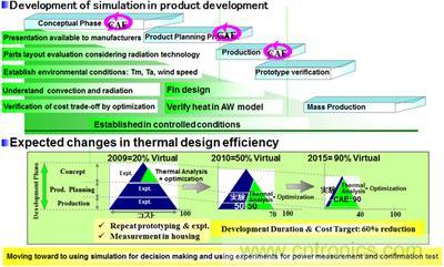 自2006年起,電裝一直在加強對模擬軟件的使用,以便減少花在物理原型方麵的時間和成本。2009年,對模擬與物理原型的使用之比為20:80,到2010年已提高到50:50。2012年則達到了70:30。這種轉變使熱設計相關的時間和成本在不到六年的時間內降低了50%。電裝計劃進一步加大對模擬的使用,到2015年將這一比例提高到90:10以上。
