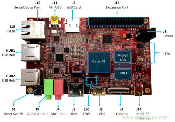 圖1:e絡盟獨家推出的基於飛思卡爾i.MX6Solo處理器的新型開源單板平台
